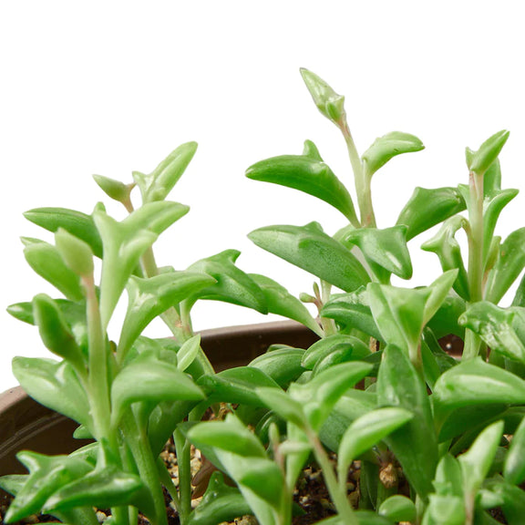 Appearance: The most distinctive feature of this plant is the shape of its leaves. They look like tiny, plump, curved dolphins jumping in a row, which gives the plant its charming common name. It's a trailing plant, meaning it grows downwards in strings or chains, making it perfect for hanging baskets.